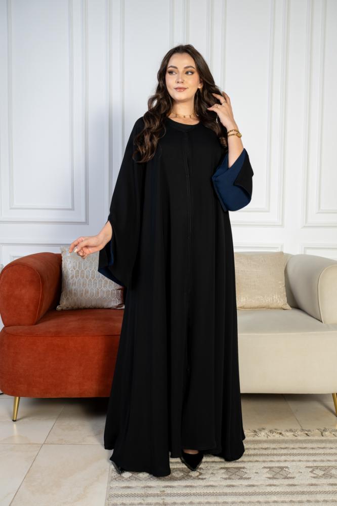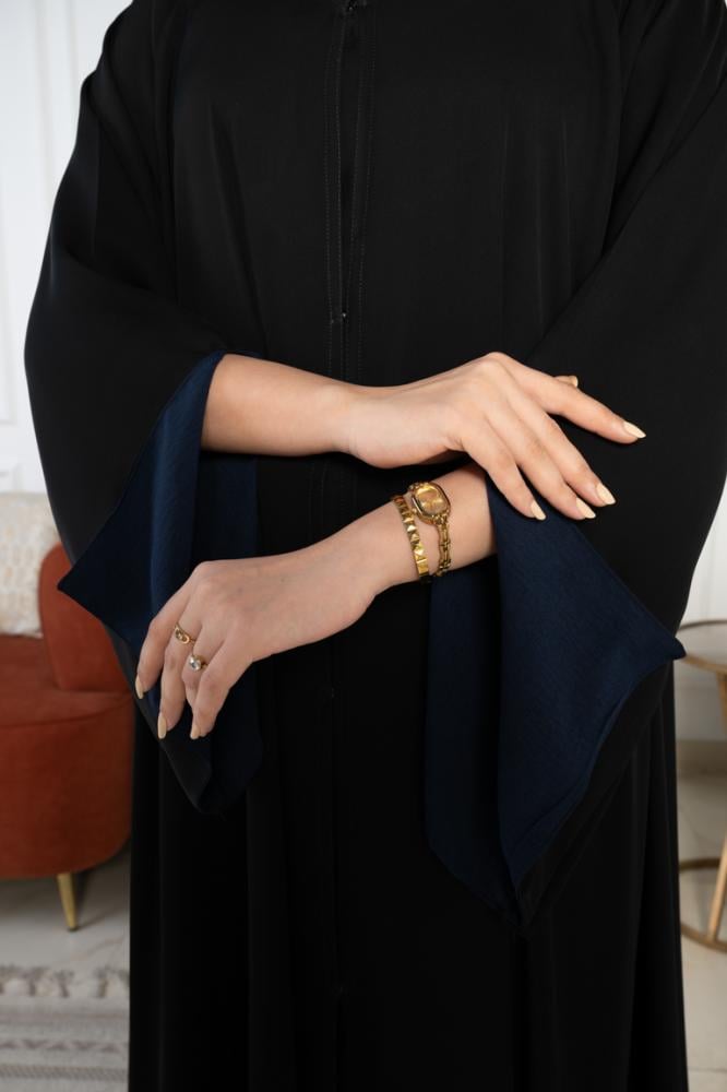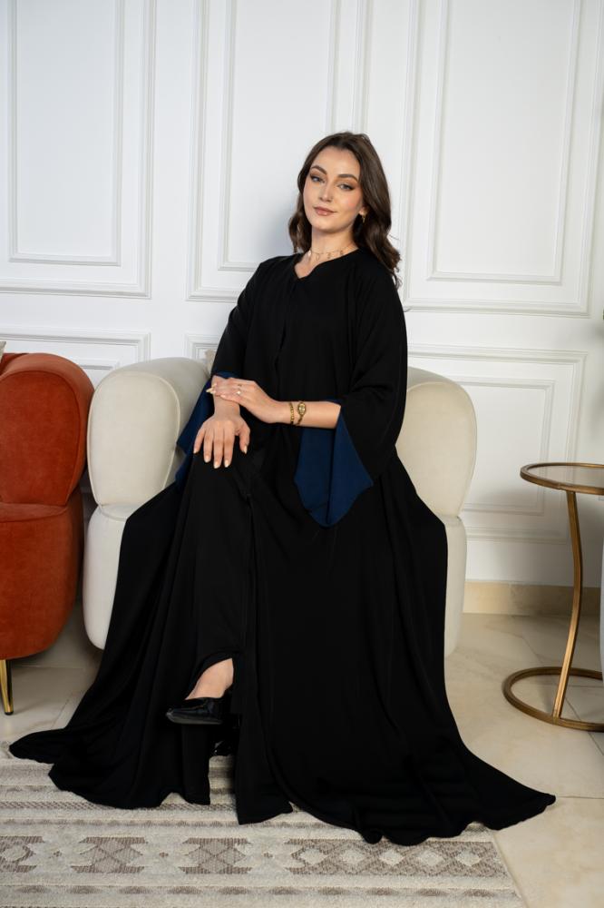 عباية كلوش حرير ندي مع كم دبل كحلي
