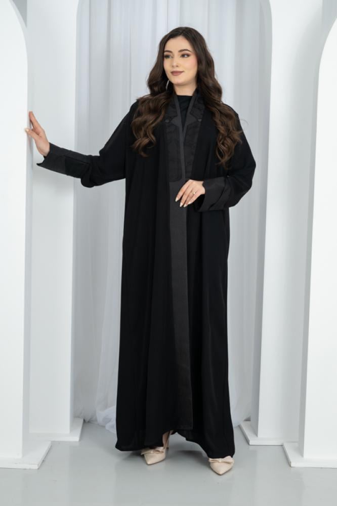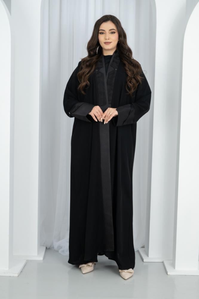 عباية راقية من قماش الحرير بتصميم كلاسيكي ولمسات ناعمة تمنحك إطلالة أنثوية متزنة بين البساطة والفخامة. مناسبة للإطلالات اليومية والمناسبات الراقية.