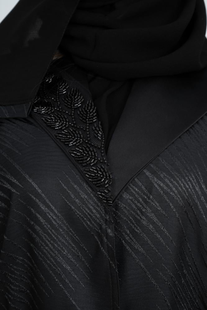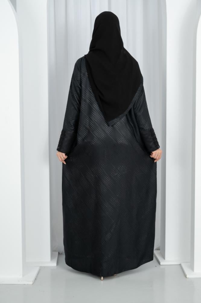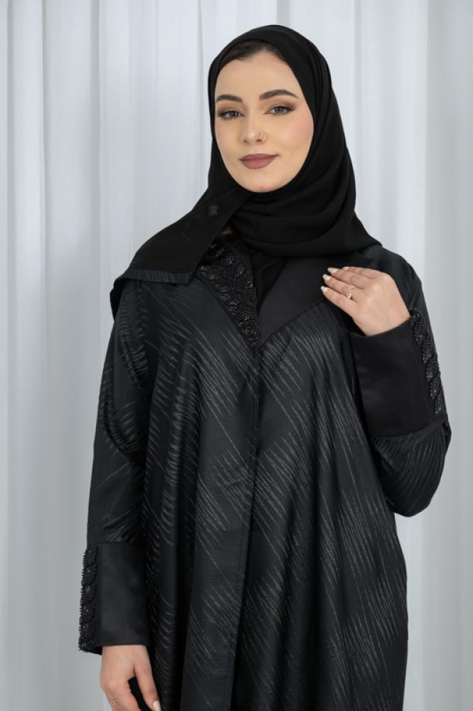 تألقي بإطلالة راقية لا تنسى مع عباية “أناقة خالدة”، المصممة بقماش جاكار الفاخر الذي يتميز بنقشة لامعة ناعمة تضيف لمسة فخمة وراقية.