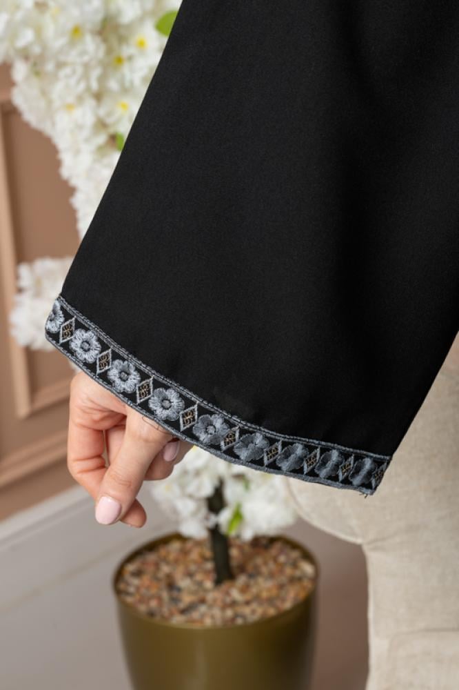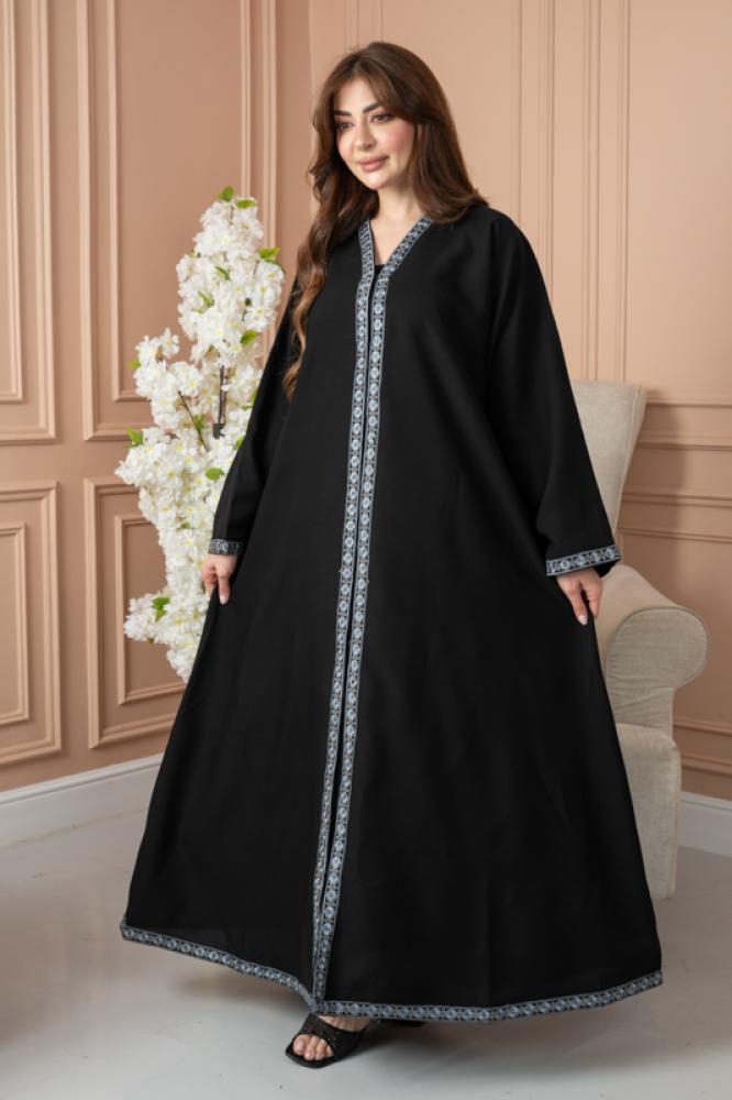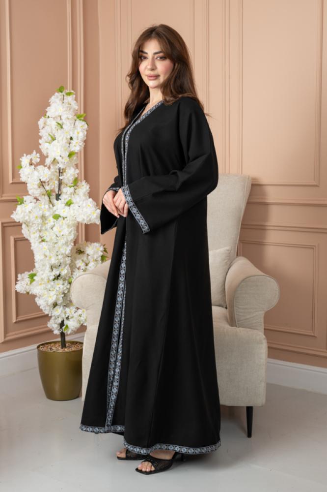 • القماش له لمعان خفيف يضيف لمسة إضافية من الرقي إلى العباية.