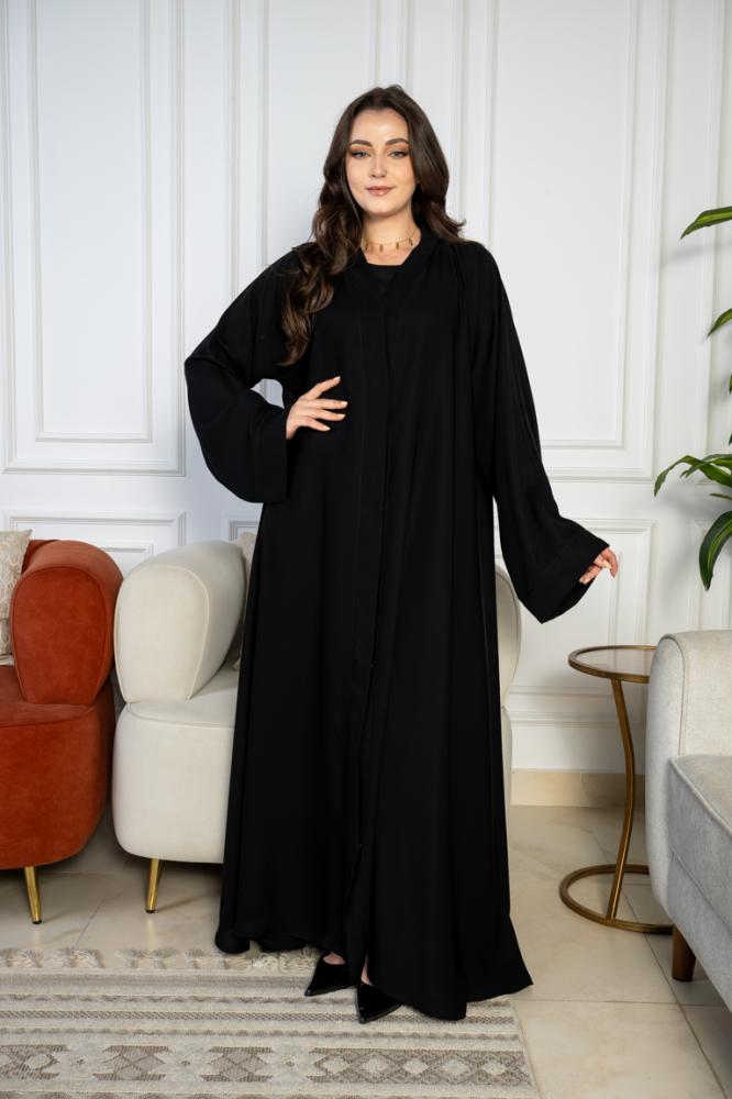 عبايتنا الراقية مصنوعة من قماش حرير سوبر ندى عالي الجودة، الذي يتميز بنعومة فائقة ومرونة تُضفي راحة لا مثيل لها. التصميم الفريد بزراير كاملة من الأعلى إلى الأسفل يُضفي لمسة أنيقة وعصرية، مما يجعلها الخيار الأمثل للمناسبات الرسمية أو الإطلالات اليومية المميزة.