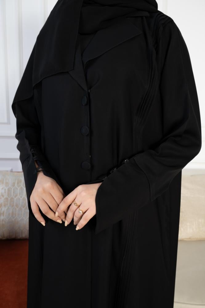 نقدم لكِ عباية سوداء تجمع بين الفخامة والبساطة في آنٍ واحد. هذه العباية مصممة لتناسب جميع الأذواق وتمنحك إطلالة أنيقة وراقية سواء في المناسبات الخاصة أو الحياة اليومية.