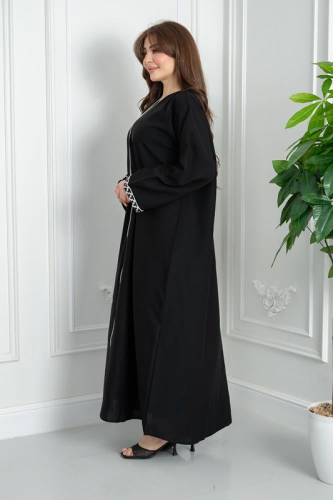 نقدم لكِ عباية سوداء تجمع بين الفخامة والبساطة في آنٍ واحد. هذه العباية مصممة لتناسب جميع الأذواق وتمنحك إطلالة أنيقة وراقية سواء في المناسبات الخاصة أو الحياة اليومية.